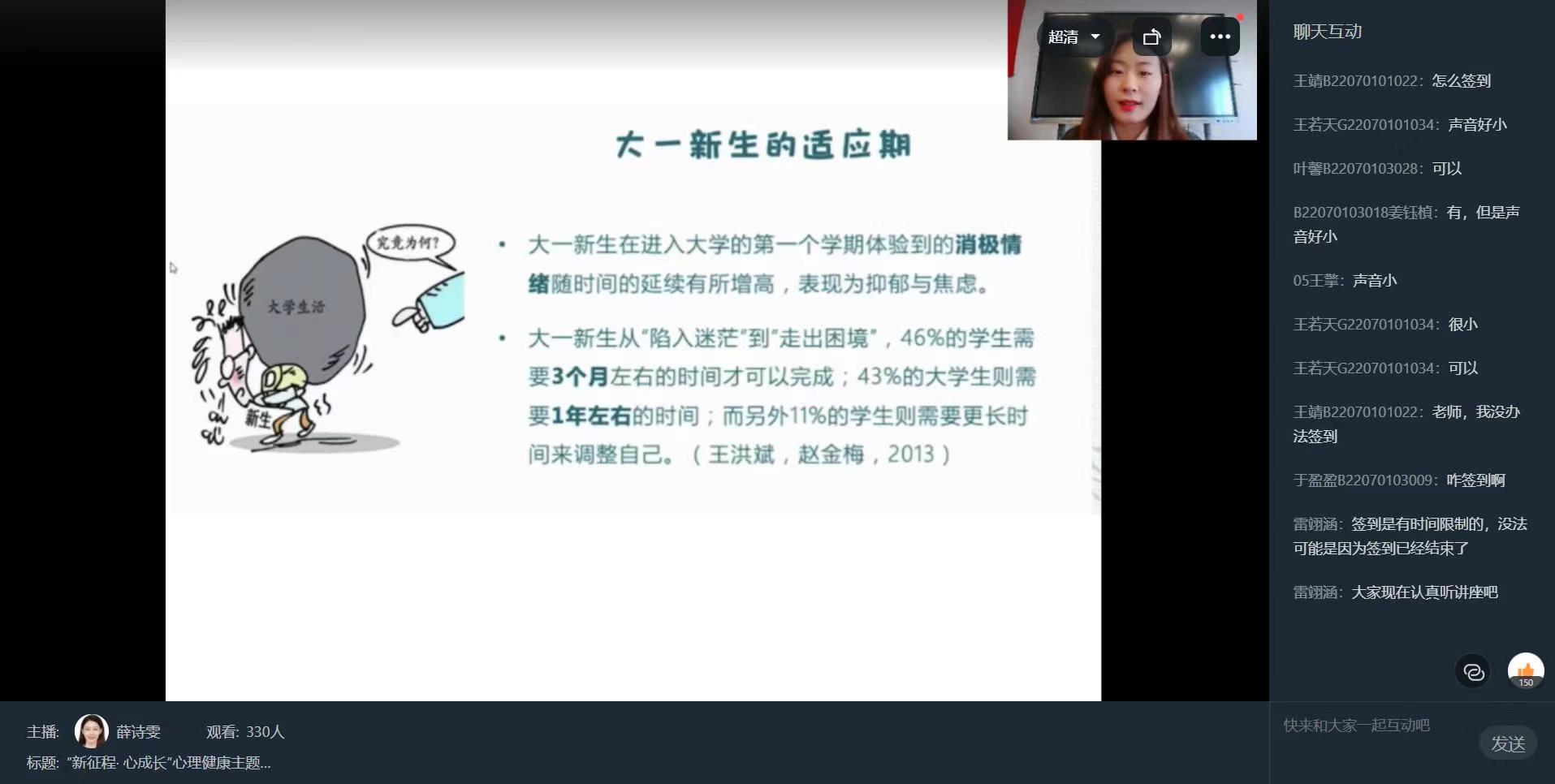 2022年10月20日下午15时,韦德体育2022级新生入学教育之心理健康教育主题讲座在线上钉钉会议室举行。本次讲座由韦德体育心理协会承办,韦德体育心理协会指导老师、国家三级心理咨询师薛诗雯老师主讲,薛老师以“新征程·心成长”为主题,用详实的案例,生动的图片,幽默的语言,为同学们带来了一场精彩的心理健康讲座。