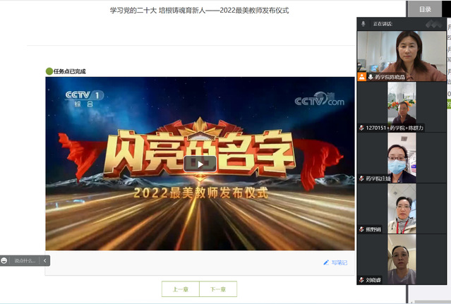 10月师德师风学习网上观看内容为“最美教师发布仪式”,全院师生均已完成网上学习。看了2022年最美教师颁奖仪式,各位全国优秀教育工作者的光荣事迹,感动了每一位观众,更让公司老师深切感受到肩上的责任。郑州大学马克思主义公司的周荣方老师,她的思政课打动人心,那些温暖、感动化作力量,像种子一样埋在员工心里,向下扎根,向上生长。航天员王亚平。其实准确说她不算教师,只是王亚平作为非在职教师,通过学习,能把自己的所学自己的特长,给全国乃至全世界人民,在太空授课,不仅仅是空间物理知识的传授,更多传播着中国文化,中国的科技力量。这是一种榜样的力量,更肩负着为国育才的使命。天津职业大学机械工程实训中心主任李建国以匠心守望初心,用师道传承大道,为职业教育与时代的发展写下为师者的华章。要学习李老师踏实肯干的精神,在指导员工实验时,首先自己要对实验的细节非常熟悉,对操作中可能出现的情况要有更全面的认识。特殊教育公司的蒙芳老师,她说的那一句话,迟开的花朵永远会绽放,折翼的天使再慢也能够行走。她用热情和孤勇成就了十几个乡镇特殊儿童的未来。当老师把一颗真诚的心交给员工,公正地对待每一个员工,公平地把爱和温暖送给每一个员工时,员工的心定会融化在师爱中,在学习生活中找到快乐,愉快地接受教育。