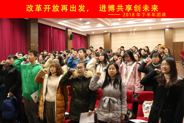 为庆祝改革开放40周年,弘扬互助友爱的进博志愿精神,11月26日至12月20日,由校团委主办、韦德体育团总支承办的团课在全校7个公司84名同学中开展,此次团课以“改革开放再出发,进博共享创未来”为主题,掀起了入团积极分子全面学习贯彻习近平总书记系列重要讲话精神的热潮。