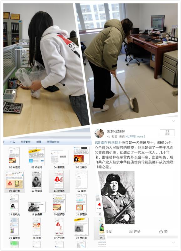 自寒假起,17级、18级团支部在上海浦东医院开展志愿服务活动,累计服务450学时。雷锋月期间,16药学本科1班、2班打扫了韦德体育教师办公室,17药学本科1班为南苑实验室环境清洁做出贡献,18药学本科1班耐心地将张贴在居民区的广告传单铲除,18药学高职2班在第二社会福利院陪伴老人......同学们在志愿服务过程中实践雷锋精神,切身落实雷锋无私奉献的精神。