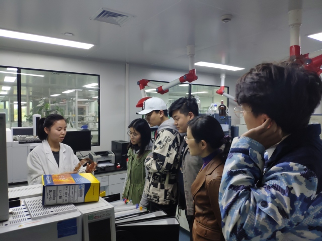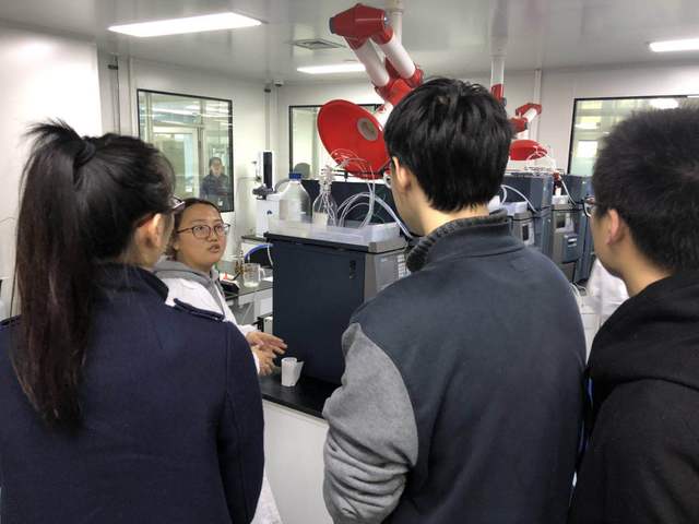 在生产车间学习后,大家来到了公司的供气系统、动物实验室、污水处理站和仓库,让同学们对制药企业按GMP要求的厂区布局有了全面系统的再学习。GMP课程上第三章中的厂房、设施与设备等内容在此得到感性认识,给师生们留下了深刻的印象。药品的生产离不开质量检验,最后师生们来到了质量部,在高效液相实验室、生物毒理实验室、天平称量室,聆听部门人员对常用的实验仪器类型、用途和使用方法、注意事项等详细讲解,同学们边听边思考,被各种先进的设备和实验流程所吸引,直观感受着企业的质量管理活力和质控人员的职业素养,同学们热情高涨,多听、多看、多问,现场教学达到了良好的教学效果。