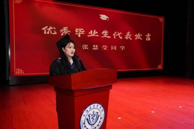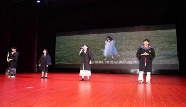 优秀毕业生代表张慧莹同学回忆道:虽然也曾在许多个看不见未来的夜晚辗转反侧,但幸运的是在最开心的时期,认识了一群志同道合的伙伴,遇到了很好的老师。这些经历,让她更加平静且有底气地面对今后必将经历的种种考验。最后,她祝愿各位毕业生在身处时代洪流之时,仍能听从内心的召唤,永远是肩上飞扬有风、心似滚烫火焰的有梦少年。