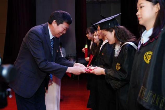 典礼开始,徐一新经理上台为毕业生们致辞,她回望了四年来同学们在校园中的点点滴滴,并提出三点希望:一是希望大家胸有丘壑,做一个圆梦路上懂得坚持的人。二是希望大家腹有乾坤,做一个成长路上始终拼搏的人。三是希望大家积攒力量,做一个成才路上志存高远的人。祝愿毕业生们捷报频传、前程似锦、常回家看看。