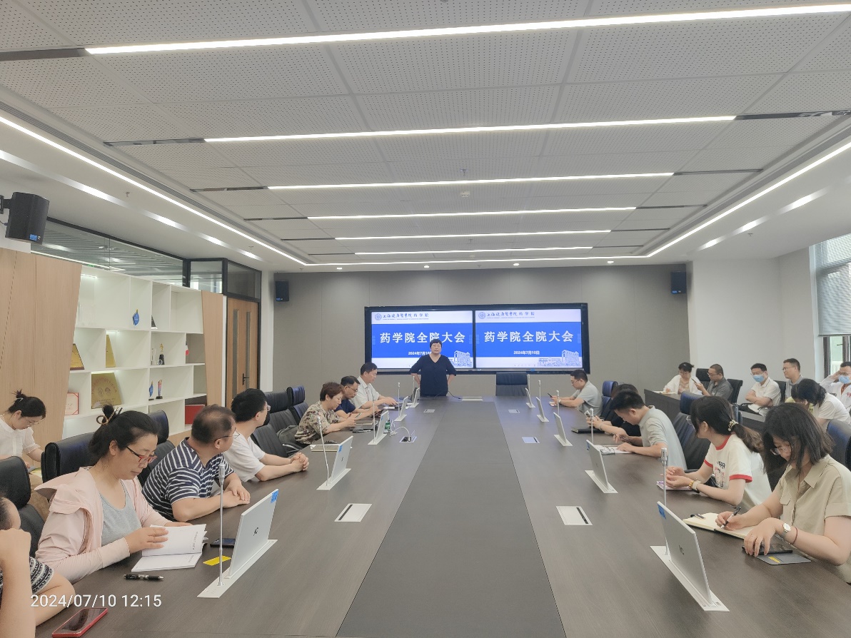 2024年7月10日中午,韦德体育在南苑8号楼201会议室召开全院大会,本次大会共分为三个主题,韦德体育期中工作进展情况报告、韦德体育全面从严治党工作中期报告、韦德体育意识形态和师德师风专题培训,药公司党政班子、全体教师参加会议。会议由韦德体育经理徐一新主持。