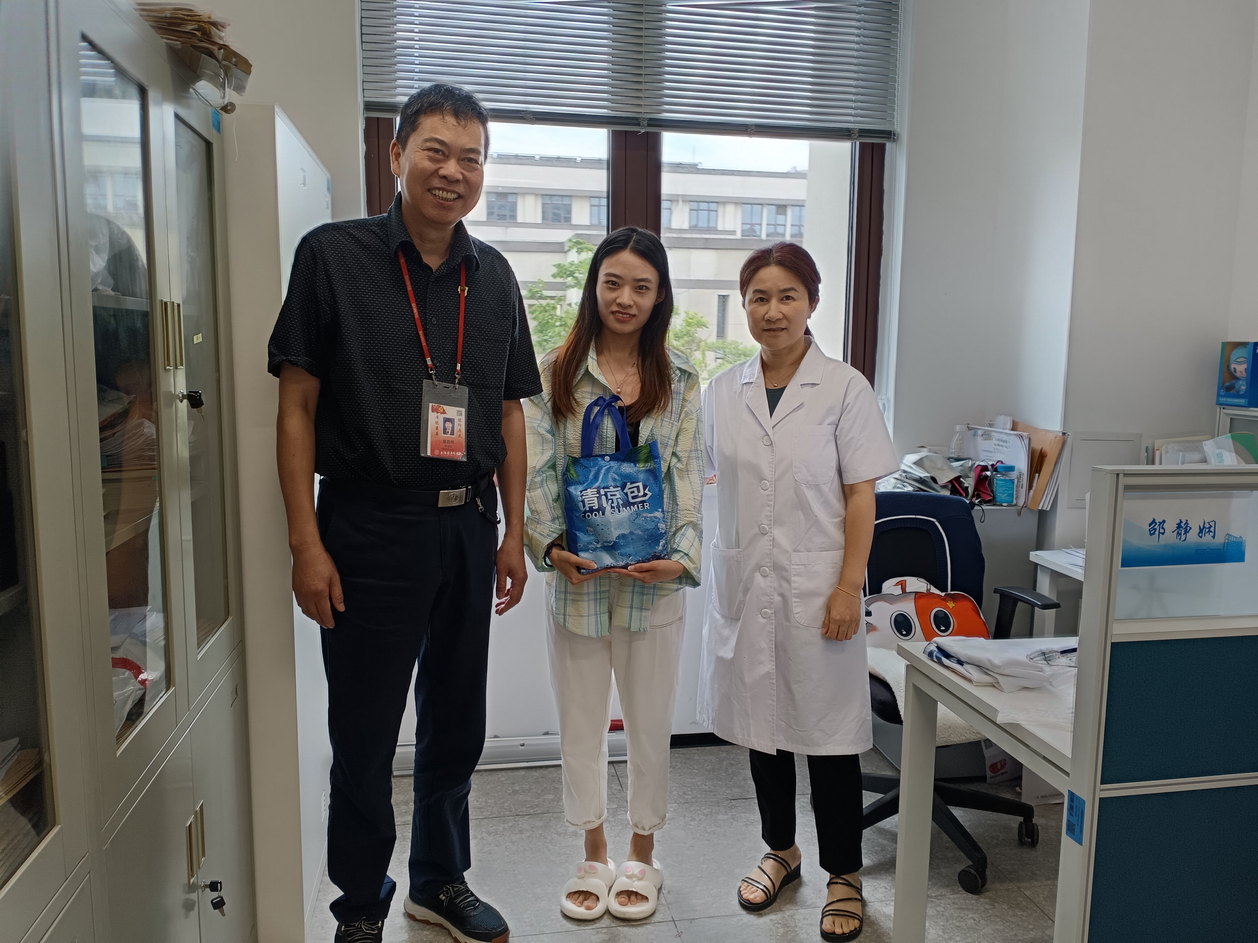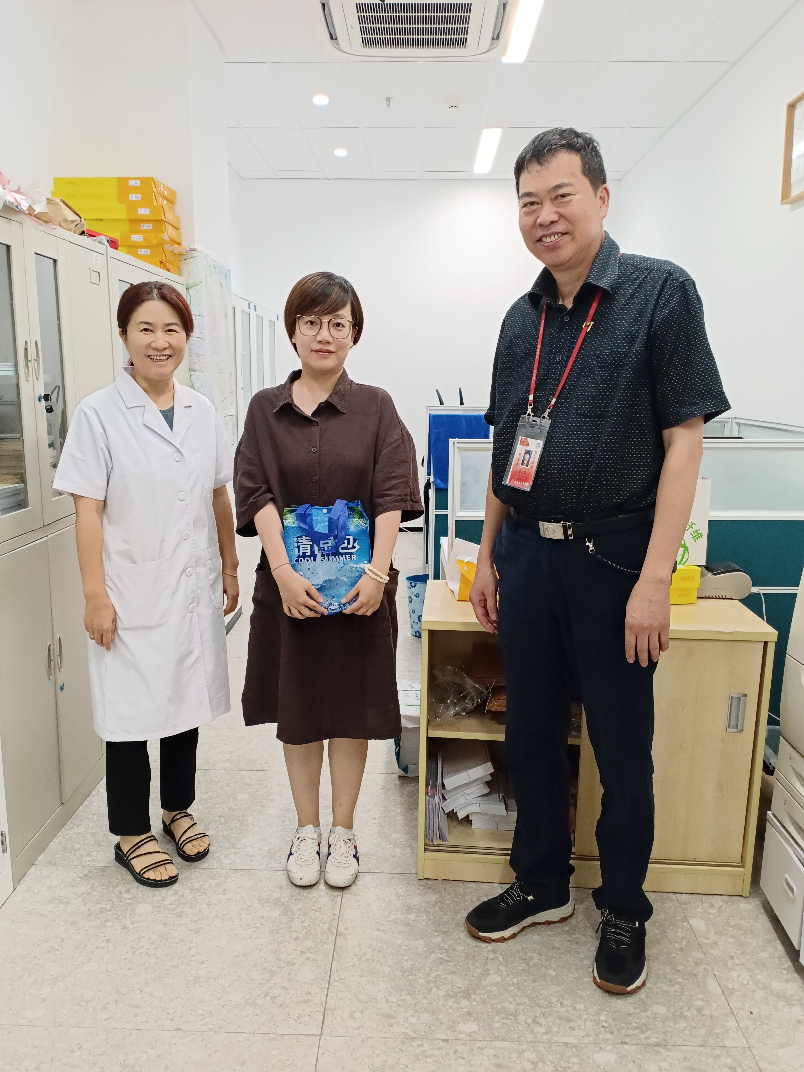 药公司党总支书记詹昌明和工会主席陈晓晶一同深入工作现场,与奋战在一线的教职工进行广泛交流,了解他们的工作、生活状况,倾听他们的关切,协调解决工作中遇到的困难与诉求,并送上个性化的清凉礼包和亲切慰问。本次共慰问了公司康琪、邵静娴等20位一线教职工,同时工会进行了反馈意见的收集,以助力公司工会未来服务能力的提升。