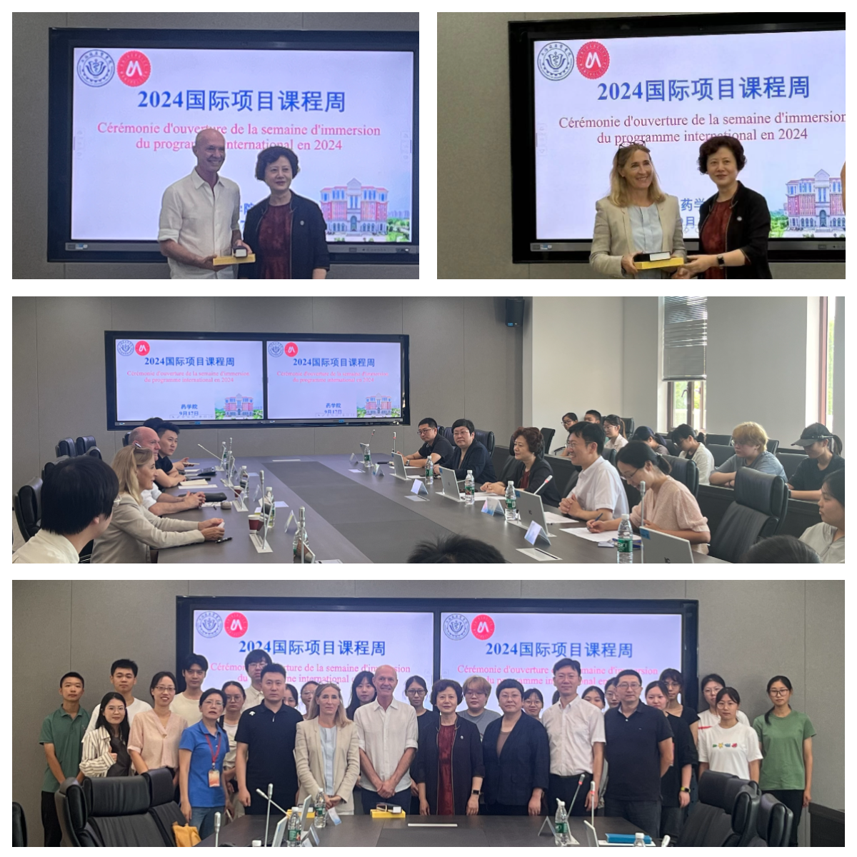 上海健康医公司党委副书记、副董事长唐红梅、法国蒙彼利埃大学Simon GALAS教授、Virginie RAGE教授,以及国际交流处、韦德体育负责人及教师代表、中法合作项目员工们共同出席开幕式,开幕式由韦德体育经理徐一新主持。
