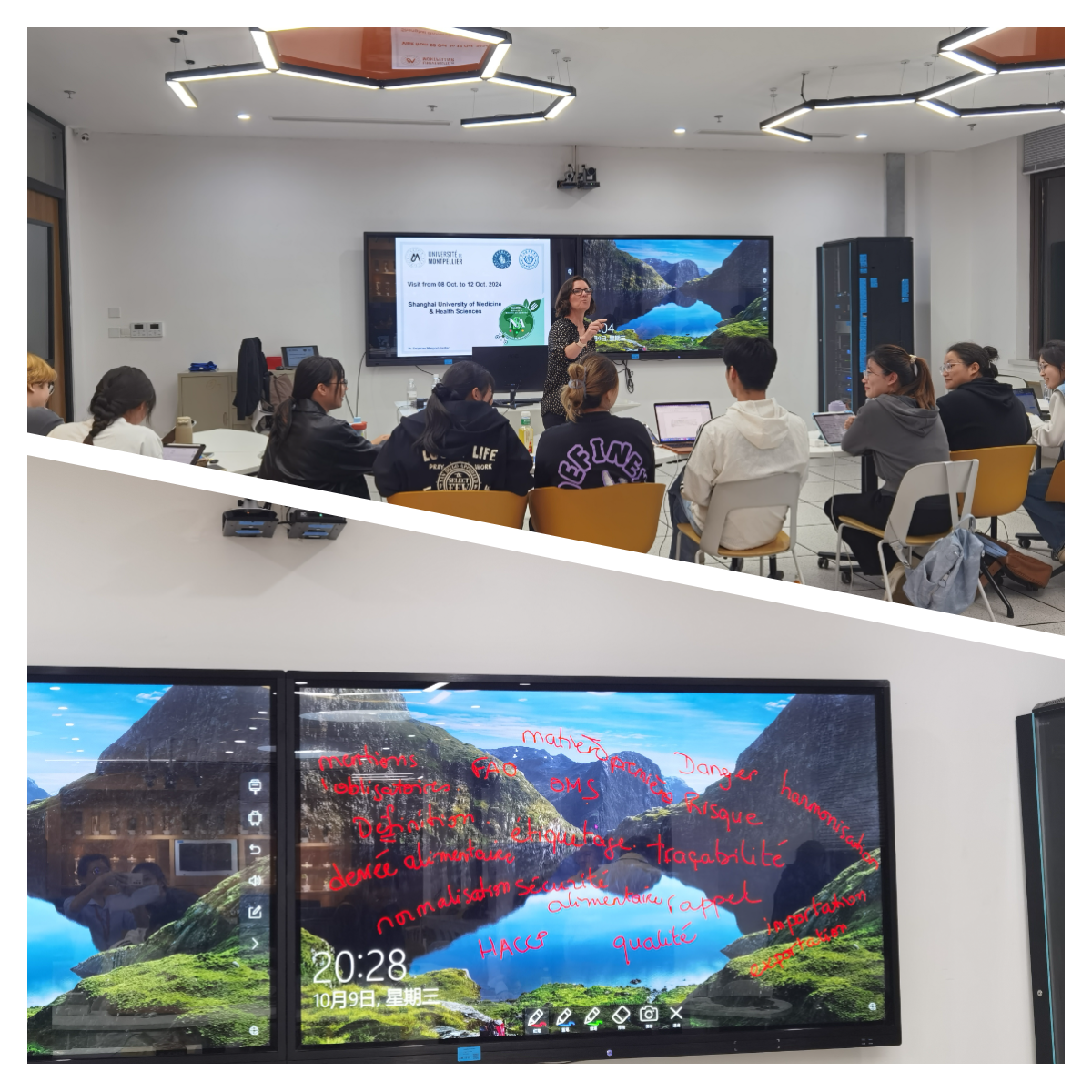 尽管MARGOUT-JANTAC教授的来访行程非常紧凑,但她充分发挥专业所长,以饱满的热情、务实的作风、丰富的感染力为药学专业大三、大四“4+2”中法合作项目班的同学们展示了12学时别开生面的法语专业课教学。授课内容包括了欧盟食品安全的监管、精油在食品中的应用、食品容器与内容物之间的污染风险及食品科学中的分析技术等多维技术,给同学们带来了跨学科的专业知识、全新的学术视野和实践指导。整个教学用法语进行,不仅拓展了同学们对专业知识的应用延伸,也提高了他们的专业法语理解能力。