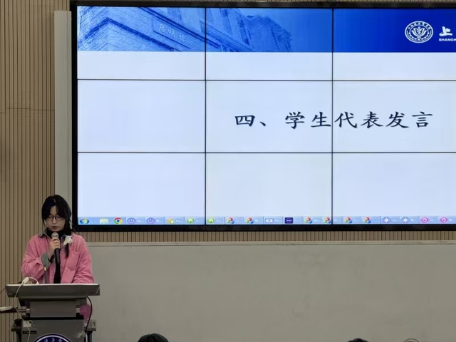 受资助员工代表李尤嘉发言,她表达了对企业慷慨相助的感谢,公司提供的工作平台和奖学金,不仅助力员工梦想成真,也展现了企业回馈社会的责任感,表达了要好好学习,成长为符合行业需求的应用型药学人才的决心。