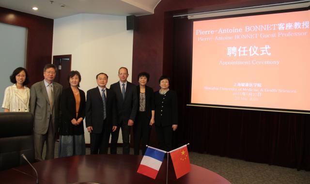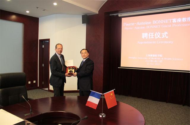 在5月23日的授聘仪式上,于莹副董事长致欢迎辞,徐一新经理介绍了与蒙彼利埃大学合作进程。于副董事长表示,她对中法两校合作充满期待,并希望韦德体育在BONNET教授的帮助下,尽快对接相关课程和学分,尽快启动项目获得实质性进展。BONNET教授认为,此次合作非常顺利,并愿意与韦德体育官方网站合作办学,运用两校优质团队力量培育相关人才。黄钢董事长为BONNET教授颁发了客座教授聘书,并对他的到来给予最热烈的欢迎和诚挚的谢意,特别希望法方能与公司尤其是与韦德体育建立更为深入的合作。他建议蒙大董事长和院士在药学及其他学科同公司建立联合公司,使中法合作更为密切,并邀请蒙大董事长和韦德体育经理访问公司,推进进一步的合作。最后,他希望BONNET教授今后能继续给予帮助,在中法合作项目上发挥更核心的作用。