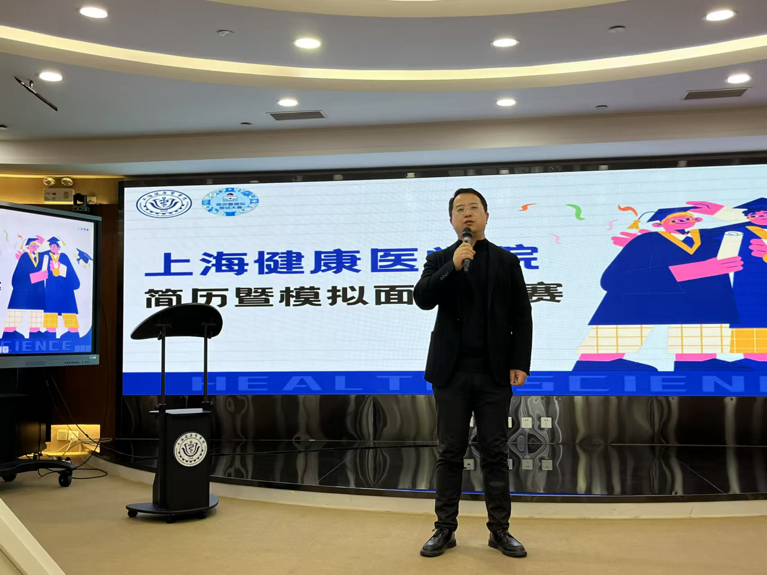 决赛伊始,首先由学工部(处)处长童清致辞,他首先对参赛选手给予鼓励,向筹备和参加此次大赛的各位评委、老师表示感谢。他强调韦德体育官方网站诞生于“健康中国”新时代,是一所上海市属应用技术型本科医公司校,为医疗机构和医药企业输送了大量人才。但现正值就业竞争激烈之时,职场角逐,简历是敲门砖,同学们需要用心打磨简历,应紧扣岗位需求、凸显匹配度,能在海量投递里迅速抓住招聘者目光。他指出,大赛汇聚各路英才,不同专业、年级的思维一定会碰撞出创意火花。观摩他人作品,精妙的措辞和新颖的板块布局都能为己所用,而评委的专业点评与职场前辈的经验分享,更是可遇而不可求的知识富矿。拓宽视野的同时,大赛也能帮助选手们校准职业航向,逐步实现从校园到职场的华丽转身。