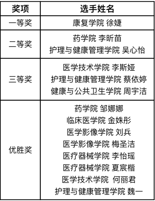 经过激烈角逐,大赛评出一等奖1名、二等奖2名、三等奖3名、优胜奖8名。杨越旺、施春燕、臧娴等6名老师获得“优秀指导老师”荣誉称号。