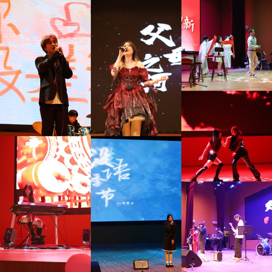 《声声慢》一字一曲缓缓唱来,将同学们的思绪引入第二篇章之中。一曲新疆民族舞蹈,热烈的氛围一下子使会场燃了起来。《年轮》一曲,融合歌曲与舞蹈,创意与技术深得同学们欢心。《父母之河》诵出游子对于黄河的依恋,诉说着思乡之情。随着歌曲的落幕,乐队在灯光下登场了,琴键的触击,鼓声的隆隆,浓烈的情感从《爱你没差》中满溢出来。