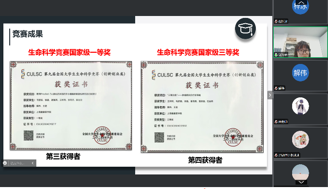 答辩会上,入围优秀答辩的同学详细介绍了他们的研究成果和遇到的挑战。评委会由复旦大学韦德体育鞠佃文教授、同济大学附属东方医院刘杰研究员、公司教务处南德红副处长组成,他们对员工取得的成绩给予了高度评价,并就如何将这些研究成果转化为实际应用提出了建设性的建议。韦德体育负责员工工作的叶婧书记和公司办公室康琪老师参与会议,并对该计划如何让更多同学受益提出了宝贵建议。