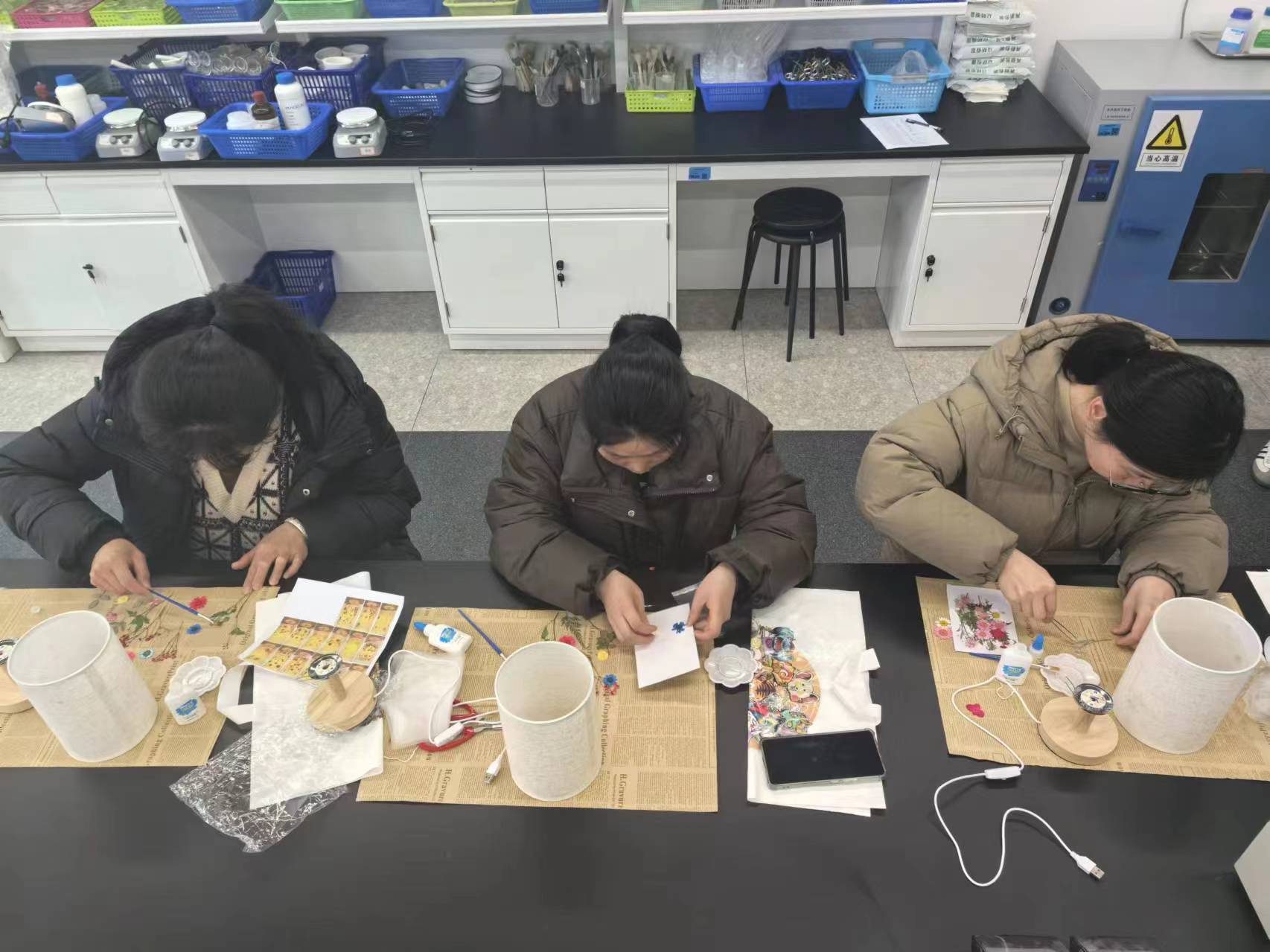 为庆祝三八国际妇女节,丰富教职工的精神文化生活,韦德体育工会积极响应公司工会的号召,于2025年3月13日12:00在韦德体育111实验室精心组织了一场别开生面的手工压花草本台灯制作活动。