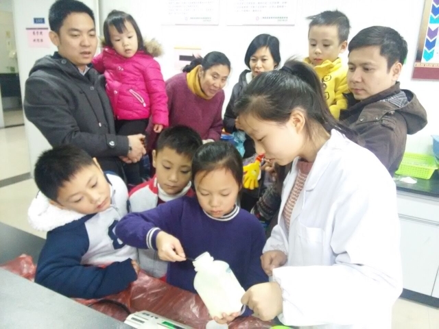 走进位于北苑的上海市现代药学公共实训中心,志愿者们首先奉上一杯健康暖身茶,让参观者驱走寒意,倍感温馨。实训中心走廊两旁是整齐摆放的中药标本和宣传展板,吸引了来访家长们的兴趣,大家挨个观察着这些日常生活中的常见中药,药学专业师生们则用热情耐心的态度进行专业知识讲解和互动。而后,参观者可以在志愿者的指导下进行常用药品——硫磺软膏的制作体验,按照步骤将原材料称量—研磨—熔融—冷却—装盒,完成现场实操,并将亲手制作的成品带回家与亲友分享。该制剂的配方简单,制作简便,仅需适当指导便可完成制备操作,获得真实的产品,曾经在第五届上海市星光计划展示项目中获得“最受欢迎项目”,在此次校园开放日中也受到考生和家长的慕名前来。最后,参观者还可以在仿真教室进行一场轻松活泼的头脑风暴,猜一猜药名,演一演病状,看一看药品制作过程,使来访的员工和家长们深切感受到药学的实用性,而志愿者们的热情阳光和专业服务更是给人留下了深刻美好的回忆。