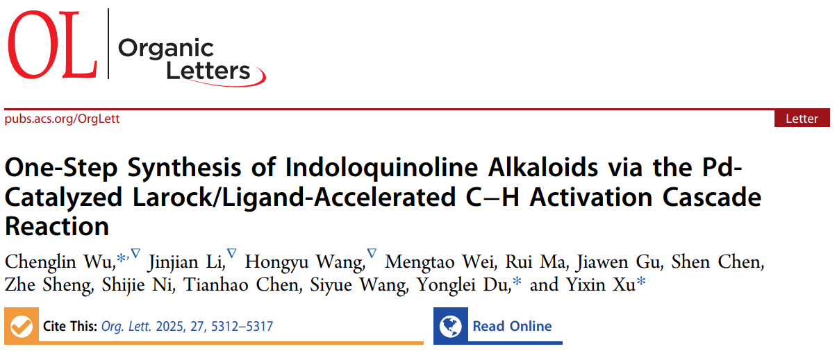 近日,公司青年教师吴成林在国际权威期刊《Organic Letters》发表了题为《One-Step Synthesis of Indoloquinoline Alkaloids via the Pd-Catalyzed Larock/Ligand-Accelerated C−H Activation Cascade Reaction》的研究成果。传统构建吲哚并喹啉的方法主要包括:(1)基于逆合成分析,需要在该骨架上断裂一根化学键预先构建高度官能团化的吲哚或喹啉衍生物;(2)采用过渡金属催化的C−H键活化策略,通常需要在吲哚分子上引入吡啶、嘧啶、喹啉等导向基团。本研究以易得的邻碘苯胺和苯丙炔酰胺为原料,通过钯催化的一锅法级联反应,首先发生Larock反应原位构建酰胺化吲哚中间体,随后利用配体促进的C−H活化实现分子内环化。该策略的创新性体现在:a)使用廉价易得的原料;b)巧妙利用酰胺基团作为内源性导向基,避免额外引入导向基团;c)通过一锅法实现两步关键转化,显著提高了合成效率。该方法的建立简化了吲哚并喹啉的合成路线,同时提高了反应效率和原子经济性,为药物化学领域开发结构多样化的吲哚并喹啉类先导化合物提供了高效、实用的合成平台。