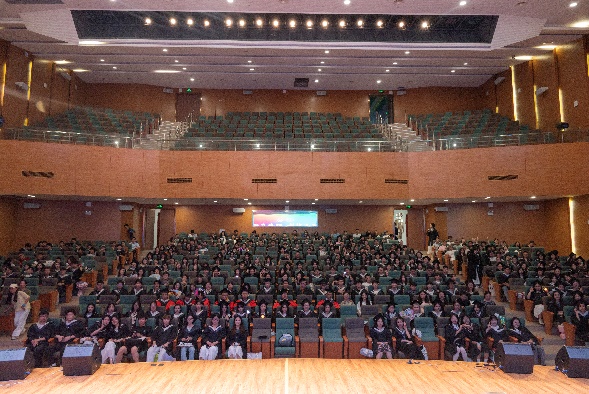 典礼尾声,毕业生代表领唱歌曲《那些年》,全场师生挥动手机灯光合唱。熟悉旋律响起,校园里的晨读、实验室的钻研、操场上的笑闹,一一浮现。典礼在“毕业快乐,前程似锦”的欢呼声中圆满落幕。