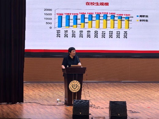徐一新书记的发言聚焦家长与新生高度关注的特色法语项目,以详实案例与数据展开阐述。她介绍,公司与法国蒙彼利埃大学(欧洲第一所医公司诞生地)的 “4+2” 本硕项目建立长期合作,该项目不仅让员工可享受法国公立大学待遇,更通过 “药学+法语” 的复合型培养填补了上海健康产品国际法规等领域的人才空白。