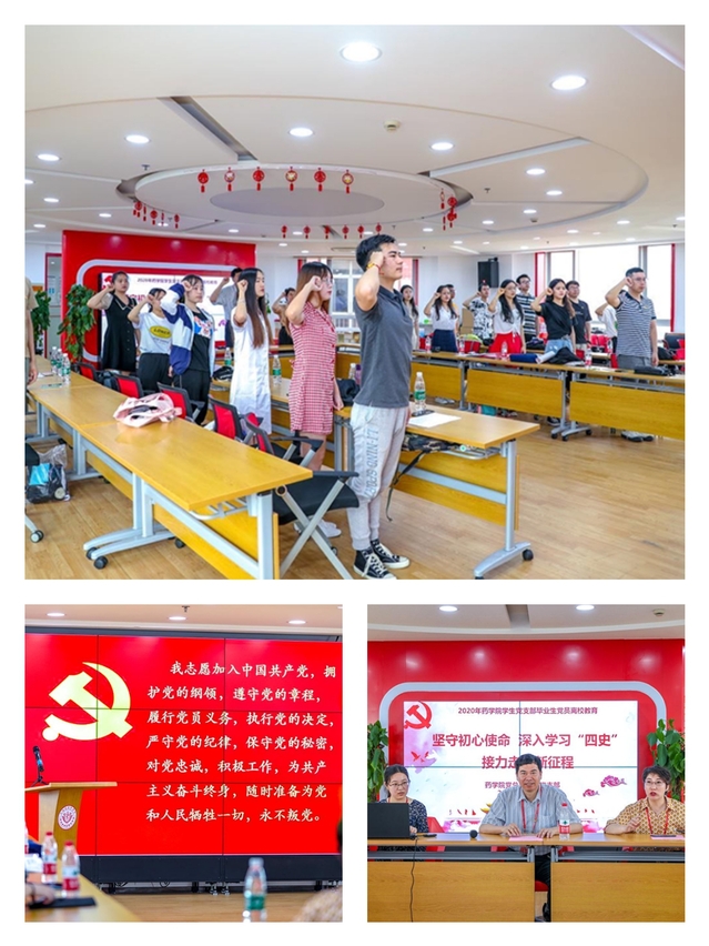 进行“不忘初心、逐梦前行”师长毕业离校寄语。离校教育会议上,药公司党总支书记詹书记强调,党员同志们要坚定入党动机的纯粹性,筑牢初心勇担使命,毕业后继续发挥好党员的先锋模范作用;要保持思想纯洁,继续巩固“不忘初心、牢记使命”主题教育学习成果,持续加强“四史”学习教育,不断用政治理论武装头脑;要强化行动自觉,积极发挥就业引领作用,为抗击疫情和助力复工复产彰显党员的使命担当。公司党总支副书记叶婧书记也结合毕业离校事宜和就业升学工作和毕业生党员们进行语重心长的交流沟通,并希望毕业生党员们以自身行动继续填好人生履历,为社会交出党员的合格答卷。