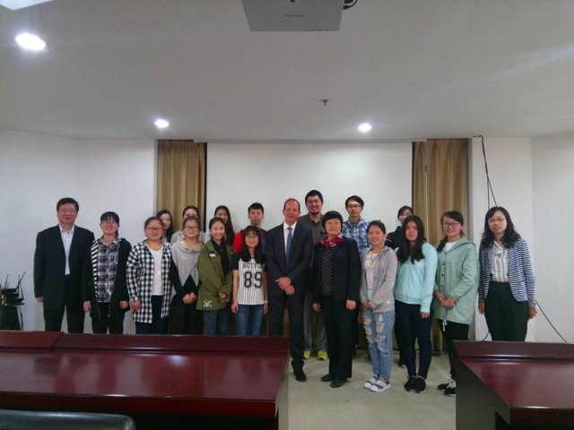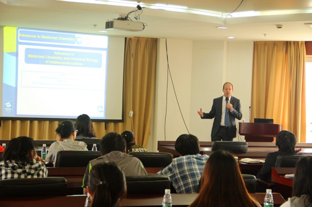 4月20日,BONNET教授为公司师生们作了一场精彩的学术讲座,重点介绍了抗肿瘤药物咪唑喹喔啉系列化学与生物学研究进展,与在场师生进行了积极互动。讲座结束后,BONNET教授又与药学专业本科法语班的同学举行了见面会,向同学们介绍蒙彼利埃大学,介绍药物学专业,并带给同学们各专业方向的宣传单片。与会同学十分珍惜此次机会,积极主动用法语或英语和教授交流,纷纷就中法合作本硕贯通项目中感兴趣的话题向教授提问,教授认真回答了同学们的问题,鼓励同学们学好法语和专业课,在学业上取得更大的进步。