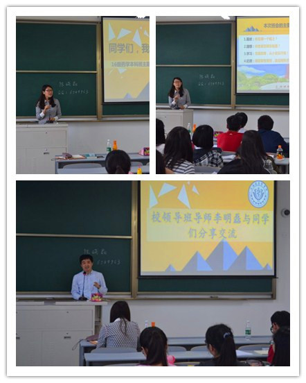 班会由邵真如老师主持,班会的第一篇章,邵老师从现状、理想、学习和纪律四个方面给同学做了分析,为同学们指出了大学学习方法的改变和未来的发展方向。通过分享考研和工作上的抉择和经历,邵老师提醒同学们大学是学习成绩和综合素质的提升,希望同学们珍惜留学和一切展示提升自己的机会,你的人生会因为你的努力变得不同!