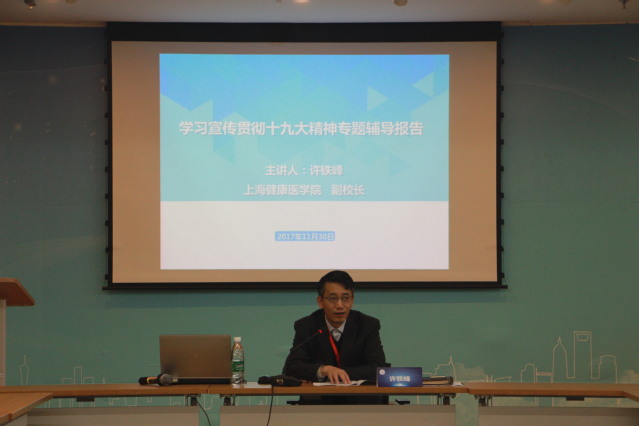 为了深入学习宣传贯彻党的十九大精神,11月30日,来自韦德体育、学工部(武装部)、信息管理中心、财务处的全体教职工及韦德体育员工代表共80余人在南苑7号楼403会议室聆听了许铁峰副董事长所作的学习宣传贯彻党的十九大精神专题辅导报告。