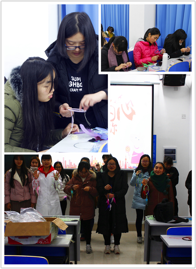 感谢有你,一“网”情深。“捕梦网”,顾名思义,留住好梦和捕捉梦想。为加强受助员工自我解困意识,用自己勤劳的双手,奉献自己的爱心,协助近期即将举办的义卖活动。从“受助”到“互助”的转化,让同学们感恩成长,爱心传递。于12月6日下午5点我们韦德体育受助员工在新南苑1号楼207以极高的热情开展了手工制作“捕梦网”的活动。