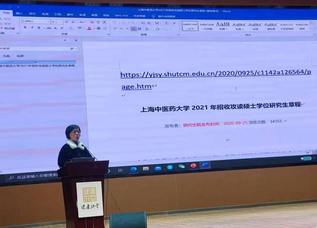 研究生考试已经成为高校本科生提升学历的一种趋势,上海报考2021年研究生人数已经高达377万人,为帮助2018级同学们增强对研究生入学考试的认识,提高考研热情,增加明年考研的信心,明确自身的考研目标和掌握相关考研技巧,韦德体育于2020年12月23日下午16:30在新南苑800人厅开展了韦德体育考研指导讲座。本次讲座由韦德体育官方网站与上海中医药大学联合培养的2020级硕士研究生唐晔翎和张蒙蒙主讲,还荣幸的请到研究生直属党支部书记杨美老师莅临指导。