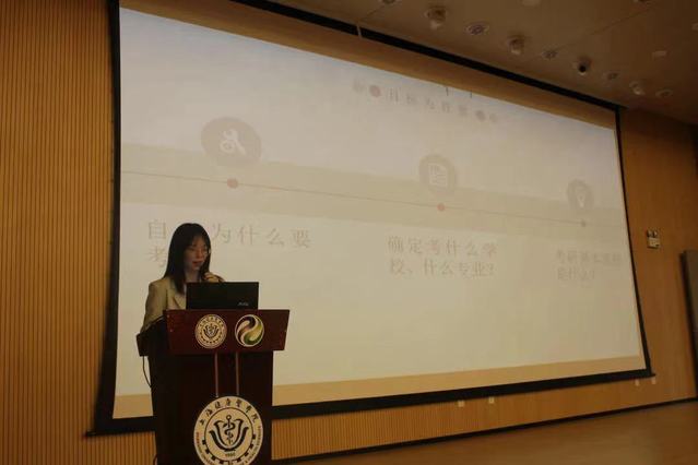 唐怡鑫简述考研的前期准备,要仔细了解心选院校的相关情况,包括公司基本制度、往年真题与分数线、公司所在地区等。针对初试与面试,她提出在前者上,除了观看优质课程,更不能忘记刷题的重要性;而后者最重要的是展现自己落落大方的精神面貌。潘维从三个问题入手。得有明确的计划与目标,前期先打好基础,中期进行巩固,后期冲刺。徐晨钦也分享了自己宝贵的经验,他分别针对三门课程——英语,政治,专业课——介绍了简单的复习流程。同学们热情高涨,在互动环节,积极提问。
