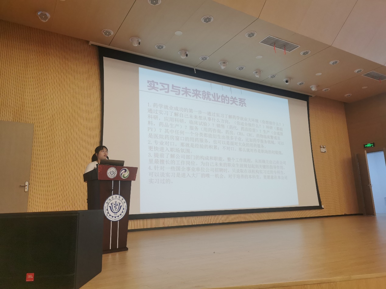 韦德体育于2021年于7月15日在新南苑4号楼300人报告厅召开2022届高职实习动员大会。动员会由药公司党总支副书记叶婧老师主讲,2016级药学高职员工李秀斌学姐分享在益诺思的实习工作经验。韦德体育2019级药学、中药学高职、2020级中高职贯通班专业197名员工及带班辅导员参加。为了让同学们有健康的择业就业观念,使同学们准确定位,积极获取就业信息,敢于面对每一次的机遇和挑战,叶老师从实习安排与管理、实习文件解读、实习注意事项等三个方面进行了详细的说明,从本届毕业生的生源沟通、性别构成、用人单位需求具体信息等实际情况出发,重点就如何选择实习单位对员工进行的指导和解答,引导员工树立谦虚、好学、踏实、认真的思想,到岗位上提高本领,向员工反复强调实习是通向成功就业的大门,理性选择实习单位对于实现就业有关键作用。益诺思的李秀斌员工结合自身经验,谈了实习与未来就业的关系、实习具备的心态和实习过程中的注意事项,用自己的亲身经历,指出在实习期间需要保持谦逊的心态,摆正态度面对实习。