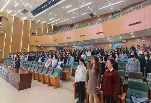 最后,新生齐唱《国际歌》,在嘹亮的歌声中,新生们仿佛回到了嘉兴南湖的红船上,体会到在党的一大结束后老一辈革命家们齐唱时的那份亘古的豪迈与勃发的激情。满腔的热情,富有朝气的面孔,展现着新时代青年的精神风貌,让我们看到了他们对党和祖国的拳拳之心。