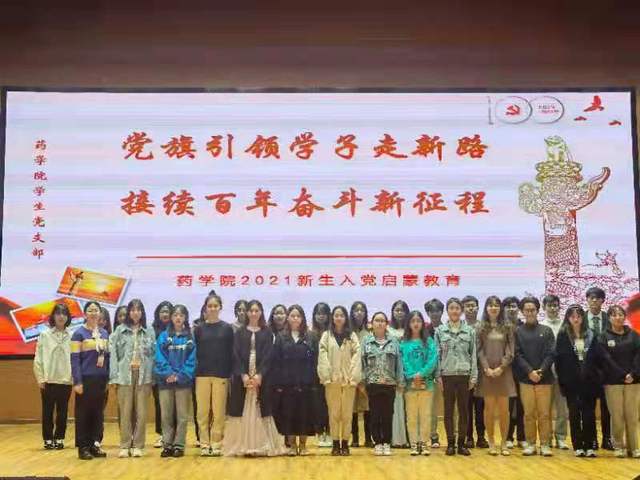 为深入学习贯彻习近平总书记“七一”重要讲话精神,进一步引导新生用初心砥砺信仰、用理论坚定信念、用实践增强信心,树立正确的入党动机,积极向党组织靠拢,在药公司党总支的指导支持下,韦德体育员工第一、第二党支部于2021年10月21日下午15时于新南苑800人报告厅开展2021级新生入党启蒙教育。韦德体育员工第一党支部书记钟旭芬、第二党支部书记施春燕、支部员工党员代表及21级全体新生参加了本次入党启蒙教育。