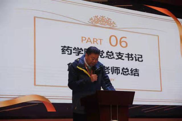 大会最后,药公司党总支书记詹昌明书记为2021年度药者仁心总结大会进行总结致辞。詹书记表示同学们不仅在服务中间得到了思想的提升和文化的熏陶,更为他人送去了温暖,为社会做出了贡献,同学们的付出得到了社会的认可,同学们的志愿者服务离不开各位老师的辅导,老师们的辛勤奉献和悉心辅导值得我们每一个人的感恩,希望在今后的时间中一起携手共进、积极进取,取得更加优秀的成绩。