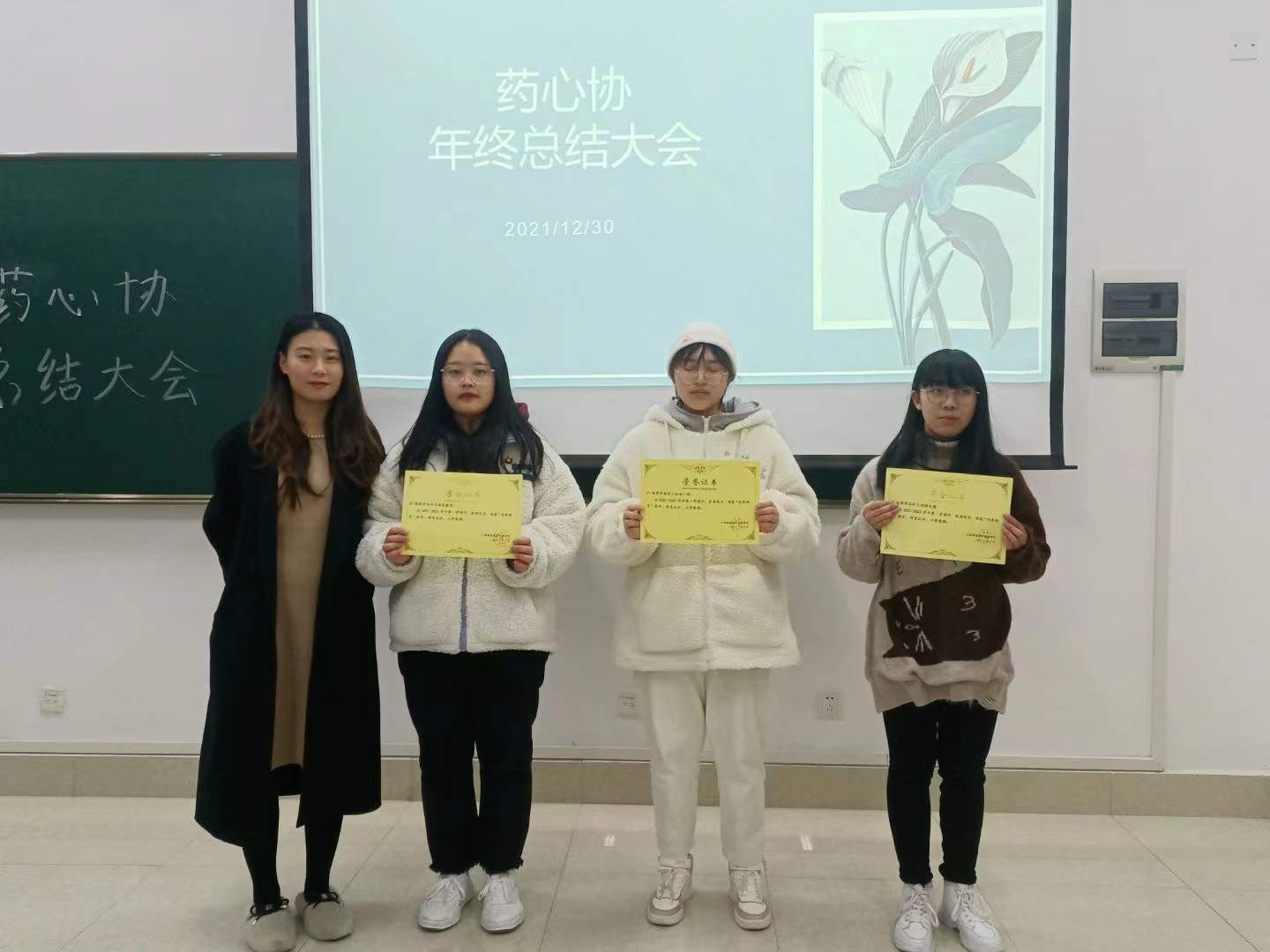 会议伊始,薛诗雯老师首先从各个部门的职能和工作内容出发,对2021年度韦德体育心理协会举办的各项活动作了大致的总结,并对全体成员的工作成果给予了肯定。其次,薛老师对班级心理委员提出了期望,建立健全“公司、公司、班级、宿舍”四级心理预警机制,真正发挥朋辈互助作用。最后,薛老师对下个学期的活动和内容做了预期和简单的安排,并希望大家能继续努力,鼓励成员们在新的学期里也要积极抓住机会锻炼,提升自己的能力,一起带领韦德体育心理协会走得更高、更远。随后,薛老师给韦德体育心理协会三位优秀部员颁发了证书。