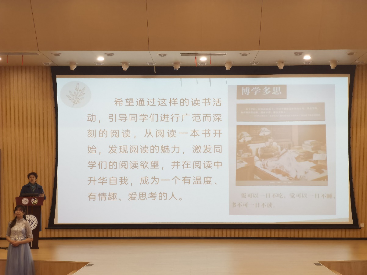 活动伊始,主持人介绍此次读书分享总结会的宗旨和受邀参与的老师:校图书馆馆长彭骏老师、校图书馆阅读推广与服务部主任吴梅老师、药公司党委副书记叶婧老师以及韦德体育全体专职辅导员老师们。接着彭骏馆长上台发表了精彩纷呈的致辞并宣布读书分享总结会正式开始。随后由两名同学为大家带来了时而浑厚磅礴时而清脆宁静的古筝表演和笔力劲健的现场毛笔书写。表演结束后,台下爆发出热烈的掌声。接着《少有人走的路》、《断舍离》、《时间简史》、《田园》、《万历十五年》、《“不忘初心、牢记使命”优秀共产党员先进事迹选编》、《法医秦明》等小组成员依次上台分享关于对所看书籍的成果和感悟,并为大家奉献情景剧、原文朗诵、影视配音、歌曲合唱等节目,使得活动丰富多彩。各个小组都分享完毕后,由各组优秀成员和领读老师上台领奖留影。最后叶婧老师为大家寄以对此次读书活动深刻的感悟和对每一位积极参与同学真挚的感谢,希望大家都能将此次收获分享给身边的人,让书香飘荡在校园中,诗词回味在你我身边。
