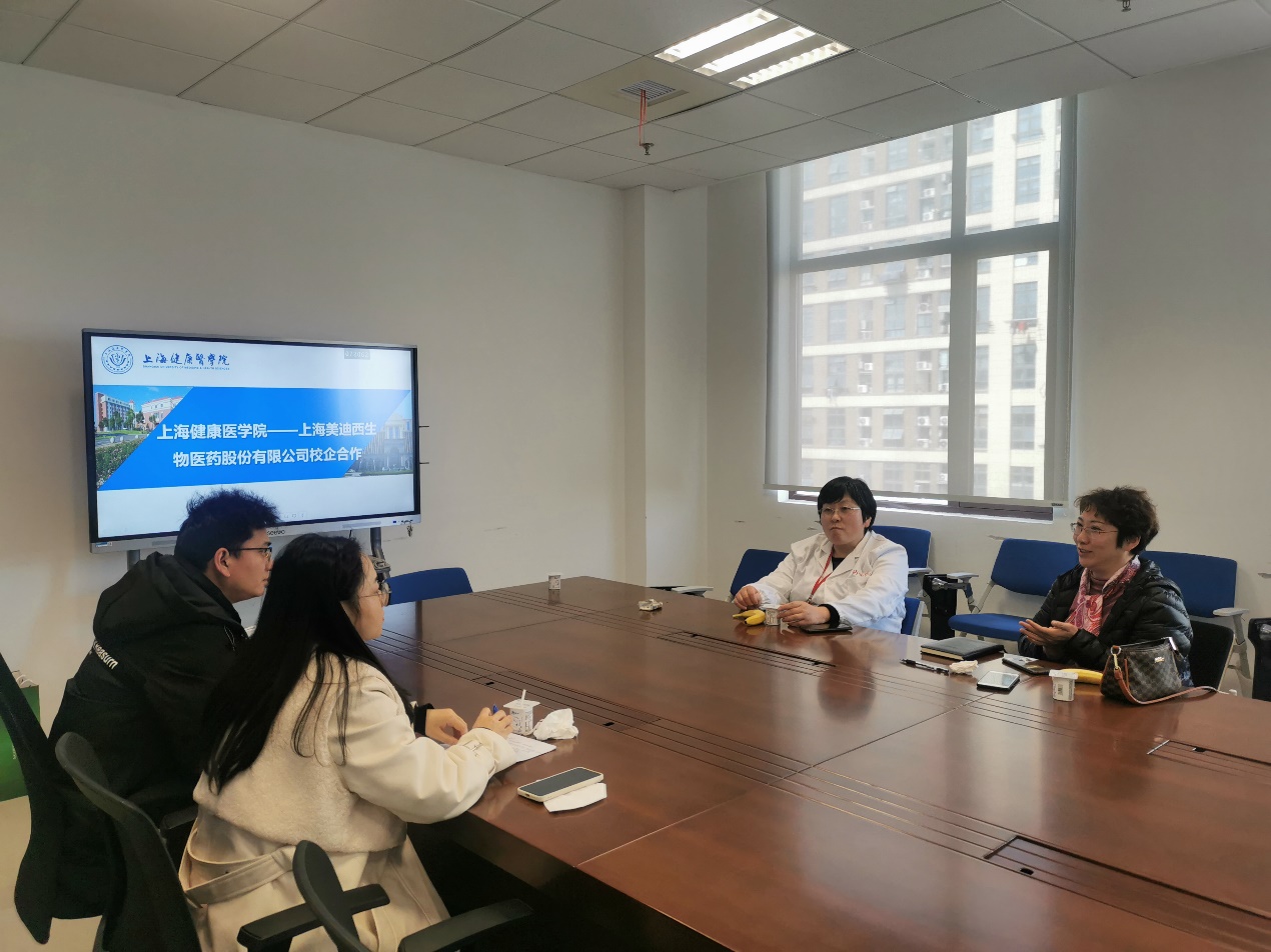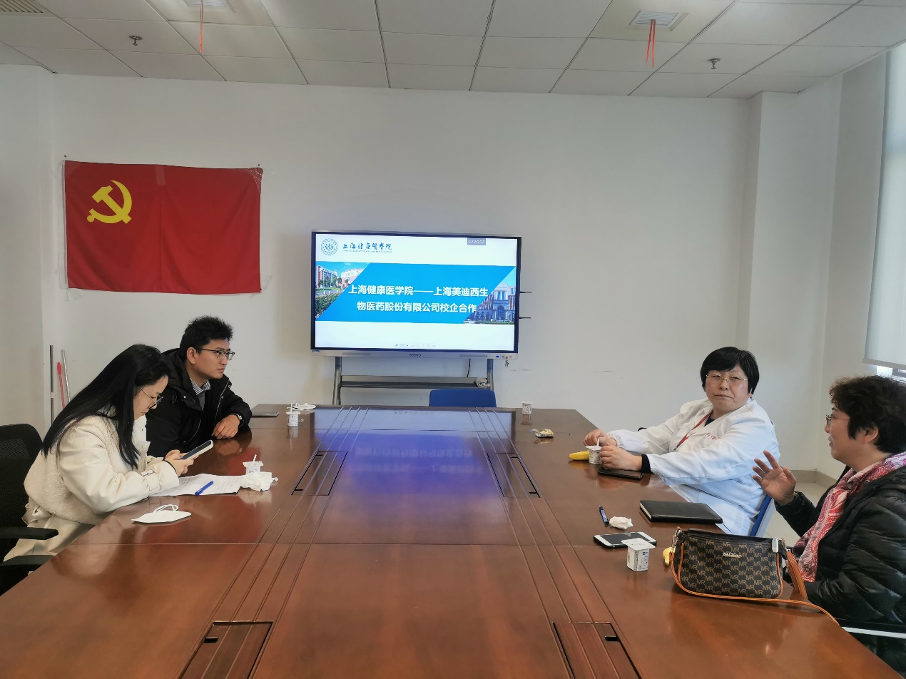 为促进公司产教结合,创新人才培养方式,2022年3月8日中午12点10分,上海美迪西生物医药股份有限公司王登成、杨柳与公司领导在南苑2号楼702交流。韦德体育经理徐一新、党总支副书记叶婧、就业专员施春燕参加此会议。