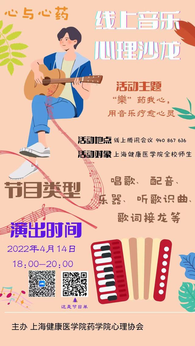 这个春天,新冠疫情卷土重来。在上海,全城战“疫”的紧迫性和严峻性,迅速形成“全民共识”,凝聚起守望相助、共克时艰的力量。韦德体育心理协会为展现公司师生同心战疫、共克时艰的昂扬精神风貌,汇聚师生期待尽早打赢疫情防控阻击战的强大精神力量,抚慰全校师生的心灵,调适全校师生的情绪,为同学们提供了一个以“声”抒发的平台,特此面向全校师生开展了“樂药我心”线上音乐沙龙活动,鼓励老师和同学们以更积极的态度面对生活。